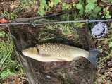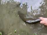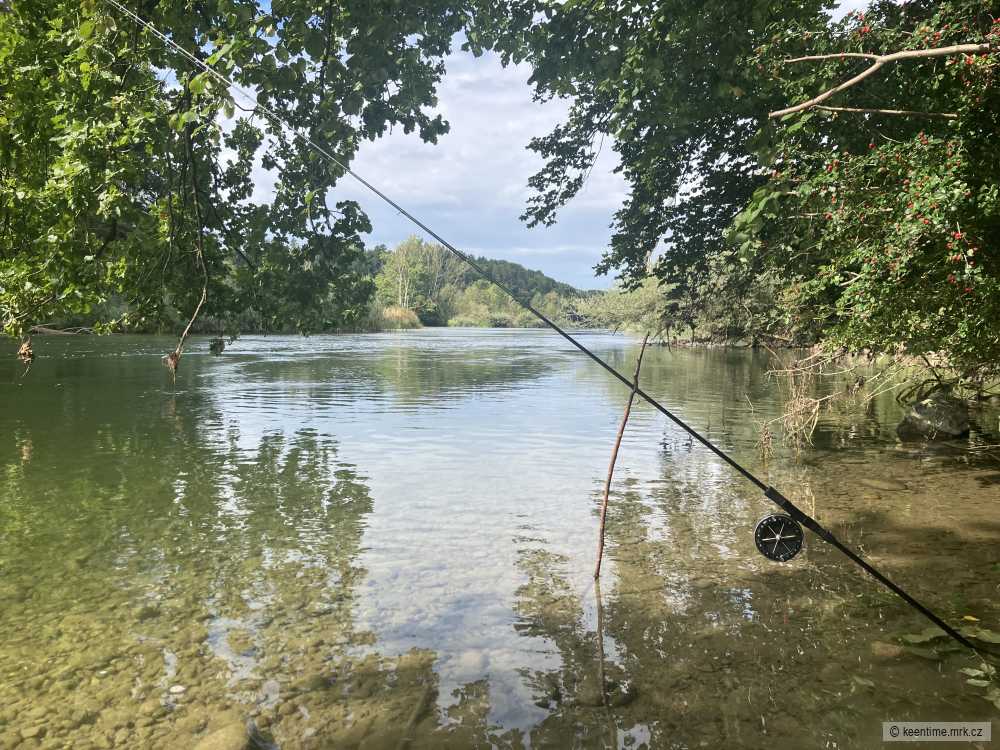 Ráno se mi bůhví jak nechce, ale jedu. Celkem rychle parkuju na místě z minula. Voda zase trochu opadla a tak stojím v gumákách u břehu opřený o starý buk a čekám na záběr. Zkouším nové háčky s rovnou špičkou a delším ramínkem, ale až teprve třetí zásek sedí... moc hezká rybka, jen mi vrtá hlavou, jestli jeden záběr nebyl kapřík... přecházím pak na další místo jen pár metrů po proudu, které tady někdo vyčistil... tak vida, nejsem tady sám, kde se rád prodírá džunglí. Slezu zase do vody, je to fajn takhle chytat, mám pro proutek dostatek místa a do ničeho se neplantám... no skoro no. Vracím se zpátky k osvědčeným wide gape... prut držím v ruce a jemné škubnutí hned kontruju, zásek sedí na první... no tak nevím, asi tu senzaci s rovnou špičkou zase z krabičky vyndám. Hezký tloušť z toho je a pak už se jen kochám, co za ryby se objevují na mém fleku. Napočítal jsem tak pět kaprů a dva naprosto neskutečně velké amury... zavalité stíny dlouhé určitě přes metr... jen pomalu, ale bez námahy, jakoby kloužou proti proudu... úžasná podívaná.