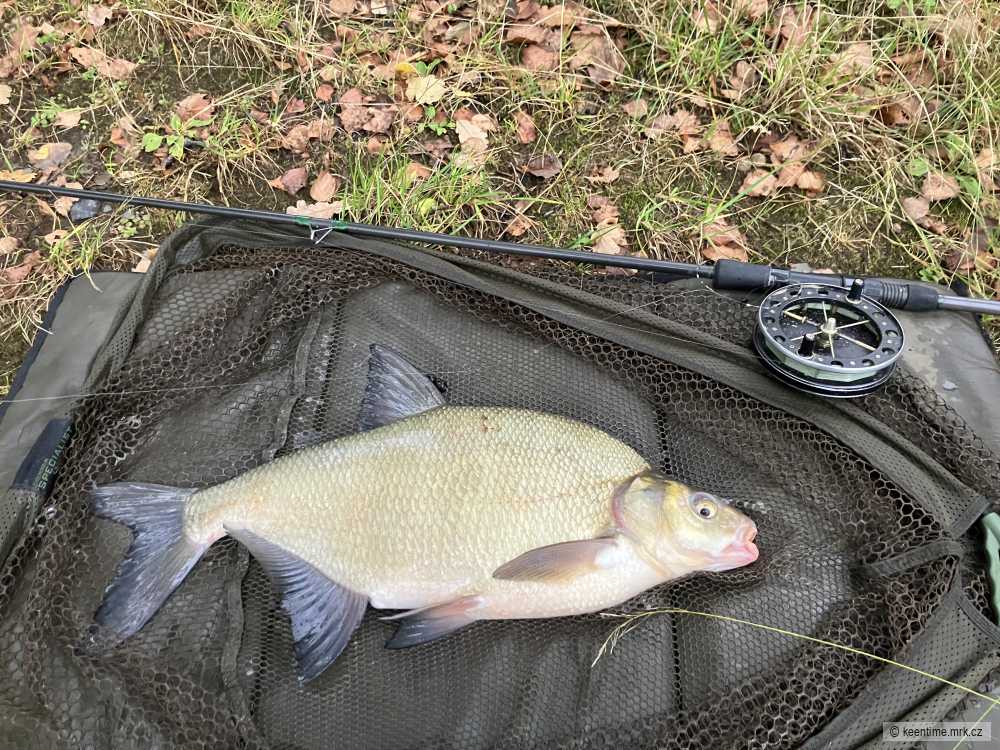 Nakonec se rozhoduji pro přehradu Wisenta, která neleží na Sále, ale k soustavě Sálské kaskády se počítá taktéž. Tady je voda čistší a je rozlohou o dost menší než ty ostatní. Dokonce nacházím při prvním pokusu i nějaké ty bublinky... snad od rybek, ale záběr jsem neudělal. Jedu klasiku, tedy kuku z plechovky a nějaké ty pelety, pár míst do deseti metrů od břehu si vždycky prokrmil a pak se přesunoval. No bída no, ve středu ke všemu spadly teploty ke třem stupňům a začalo vytrvale pršet... ale nedal jsem se, naštěstí jsem měl s sebou svoje poncho do deště, takže se to dalo vydržet, ale záběr jsem zase neudělal. Ve čtvrtek už o něco líp, dokonce se na břeh podívaly první rybky - ploťka a tlouštík tak dvacet cenťáků. V pátek nejlepší den, dva celkem hezké cejny a zase nějakou drobotinu plus k tomu jedna jízda, ale zásek do prázdna ajajaj. No a pak už zase hajdy domů.